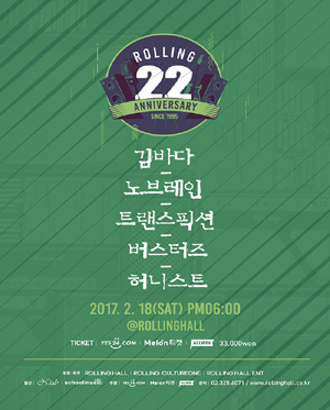 롤링 22주년 기념 공연 vol.11 김바다X노브레인X트랜스픽션X버스터즈X허니스트 티켓오픈안내입니다.