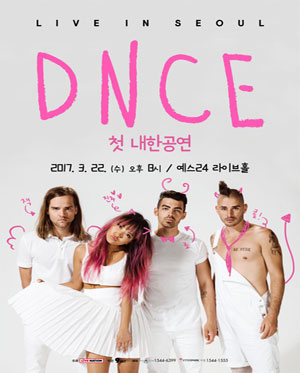 한국인 멤버 이진주가 속한 미국 팝 밴드로 국내에서도 큰 화제가 되었던 ‘디엔씨이(DNCE)’가 오는 3월 22일(수) 광장동 예스24 라이브홀에서 첫 단독 내한공연을 펼친다.