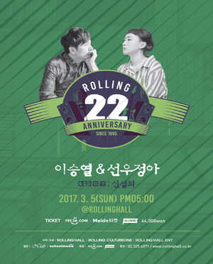 롤링 22주년 기념 공연 vol.18 이승열X선우정아 티켓오픈안내입니다.