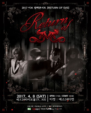 매니아층과 대중적인 인기를 한 몸에 얻은 밴드 이브(EVE)가 2017년 4월 8일, 16년만에 원년멤버 단독 콘서트를 펼친다.