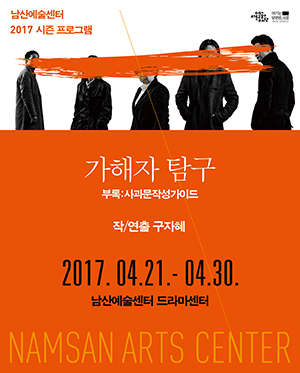 <가해자 탐구_부록:사과문작성가이드>는 작년 한 해 수면 위로 떠오른 문단, 미술, 서브컬처 등 다양한 예술 장르 내 성폭력 문제를 무대 위로 소환한다. 이 공연은 예술계 내 성폭력 피해자들의 다양한 사례 중 위계 그리고 예술가라고 불리는 자들의 자기도취에 의한 성폭력과, 피해자들이 이 문제에 대해 고발할 경우 창작의 기회를 다시는 얻을 수 없다는 공포를 조장하는 부조리에 집중한다. 2016년 계간 《문학과 사회》 겨울호에 실린 송섬별 번역가는 “어떤 사건에 대해 기록하는 역할을 문인인 자신들이 독점할 수 있다고 믿는 것” 에 대해 문제를 제기했다. 이 공연은 기록되지 못하고, 배제되었던 사실들을 무대화시킨다. 그 지면의 무대에서 이야기하는 사람들이 있다. 그렇다면 지면 혹은 무대에 설 수 있는 자는 누구인가? 지면 혹은 무대는 누구에게 독점되었나? 배제되었던 지면을 무대화한다는 측면에서 작품 제목 내에 [부록]이라는 단어를 삽입한다.