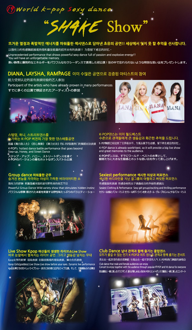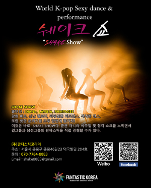 공연 제목 : 쉐이크쇼(Shake Show) 공연 기간 : 2017년 3월 21일~ 2017년 4월 20일 공연 시간 : 화, 목, 일 오후 5시, 8시(4월 9일 제외) 공연 장소 : 하나투어 브이홀 티켓 가격 : 전석 25,000원
