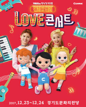공연 제목 : 캐리와 장난감 친구들 〈캐리 X 엘리 러브 콘서트〉- 수원 공연 기간 : 12. 23(토) ~24(일) 공연 시간 : (토,일) 11시,2시,4시30분 공연 장소 : 경기도문화의전당 대극장 티켓 가격 : R석 55,000원 관람등급 : 24개월이상 유료관람(기준일 2016. 1. 23 이전출생), 24개월 미만 입장불가