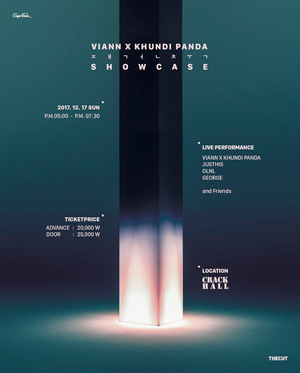 공연 제목 : VIANN X KHUNDI PANDA [재건축] 쇼케이스 공연 기간 :12.17 17:00~19:30 공연 시간 : 17:00~19:30 공연 장소 : 홍대 크랙 티켓 가격 : 20.000 원 (기타 : 선착순 입장)