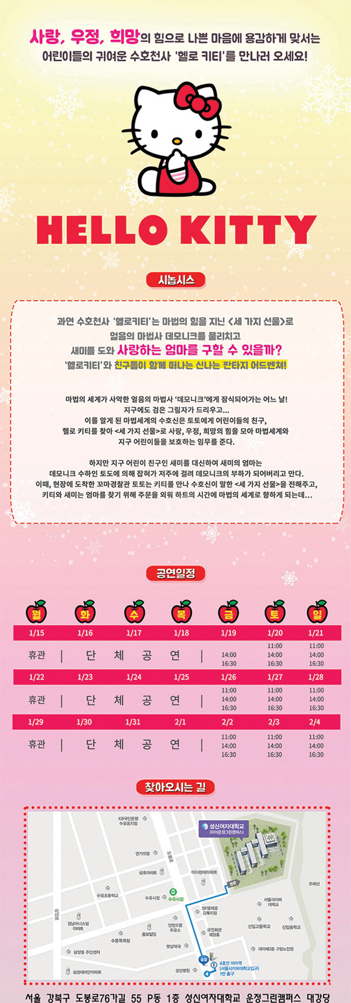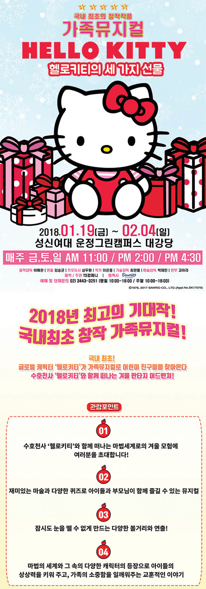 공연 제목 : 가족뮤지컬 <헬로키티의 세 가지 선물> 티켓 오픈