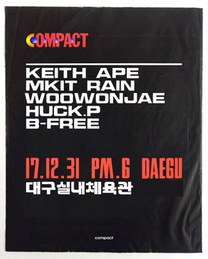 한국 힙합씬에서 자신의 영역을 공고히 해오며 자신의 팬덤과 함께 성장하고 있는 새로운 엑기스 같은 뮤지션들을 한자리에서 만날 수 있는 실내형 힙합페스티벌 “컴팩트”가 이례적으로 한국 힙합의 성지 대구에서 열린다 1년6개월만에 컴백하는 ‘키쓰에이프’는 물론 쇼미6의 우원재,메킷레인,허클베리피,비프리, 등이 함께해 한국힙합의 현재를 느낄수 있는 절호의 기회가 될 것입니다