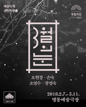 매 공연 관객의 눈가를 붉게 물들이며 전석 매진을 기록한 국립극단의 대표 레퍼토리 <3월의 눈>이 3년 만에 돌아온다. 재개발 열풍으로 한평생 일구어놓은 집 한 채가 사라질 위기에 처한 노부부. 정작 그들은 담담히 일상을 지내지만 이들을 제외한 주변은 시끌벅적하기만 하다. 급변하는 이 시대, 사라져가는 모든 것들에 대한 그리움을 묵묵히 담아낸 이 작품은 자극적인 내용도, 극적인 반전도 없지만 잔잔한 바다에 일렁이는 파도처럼 어느 순간 우리 마음을 흔들어 놓는다. 세상에 오면 가는 것이 이치라고 했던가. 한 짝 한 짝 뜯겨지며 소멸되는 한옥이 책상도 되고 밥상도 되며 끝없이 순환하는 자연의 순리는 팍팍한 우리 삶을 위로하며 그렇게 또 우리 마음을 녹이고 지나간다.