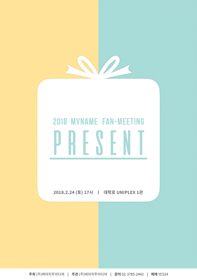 - 공연명: 2018 마이네임 팬미팅 [Present] - 공연장: 유니플렉스 1관 (서울 종로구 대학로12길 64) - 공연일정: 2018.02.24 (토) - 공연시간: 오후 5시 - 러닝타임: 100분 (인터미션 없음) - 관람연령: 만 7세 이상 - 등급: 전석 55,000원