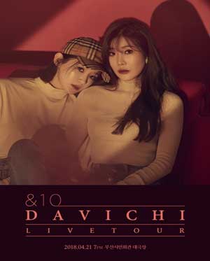 공 연 명 : DAVICHI LIVE TOUR ‘&10’ - 부산 공연일시 : 2018년 4월 21일(토) 오후 7시 공연장소 : 부산시민회관 대극장 티켓가격 : VIP석 121,000원 / R석 110,000원 / S석 99,000원 관람등급 : 만7세 이상 관람가