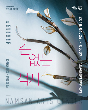 <손 없는 색시>는 전통적 이야기 구조를 현대의 캐릭터와 결합하여 창작한 희곡이다. 거대 구조화된 사회 속에서 살아가는 개인이 우연하게 맞닥뜨리는 상처와 불행을 어떻게 견디고 소화하며 살아가는가에 대한 물음에서 시작되었다. 전쟁에서 남편을 잃은 슬픔 때문에 손으로 항상 자신의 아픈 가슴을 쓸어내리는 색시. 어느 날 색시의 손은 더 이상 색시의 아픈 가슴을 만지기 싫다며 스스로 떨어져 나와 떠나 버린다. 역시 색시의 슬픔 때문에 늙은 채로 태어난 아들, 붉은 점. 색시는 노인네 아들 붉은 점의 수의를 직접 만들어 주기 위해 손을 찾아 여행을 떠난다. 손으로 아픈 가슴을 두드리고, 손으로 쓰디쓴 눈물을 닦고, 손으로 폭발하는 온갖 고통을 짓누르는 행위에서 시작해 만들어진 이 이야기는, 색시, 색시의 손, 색시의 늙은 아들 붉은 점이 어떻게 불행을 받아들이고 이겨내는지를 보여준다. 이 작품을 통해 회복이라는 것은 본래 상태로의 복귀가 아니라 문제를 인정하고 곁에 두는 것이라는 믿음으로 우리 모두의 회복을 꿈꾸어 본다.