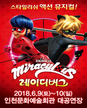 마리네뜨와 아드리앙! 마법의 귀걸이와 반지로 슈퍼히어로'레이디버그'와'블랙캣' 으로 변신하게 되는데 마법의 힘으로 슈퍼히어로가 된 평범한 소녀의 비밀스러운 이야기를 함께 지켜보자! 화려한액션과 버라이어티한 볼거리! 가족공연으로 찾아가게될 레이디버그 기대하세요~