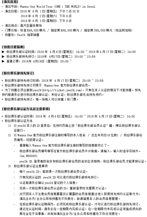 ▷ 팬클럽 선예매 기간: 2018년 4월 17일(화) 20:00 ~ 23:59