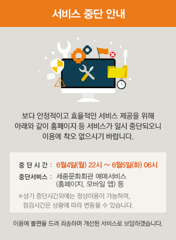 보다 안정적인 서비스 제공을 위해 세종문화회관 시스템 점검을 아래와 같이 실시합니다.