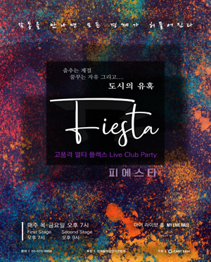 공연명:피에스타 공연일자:매달 매주 목금 공연 2018년 12월 28일까지 공연을 합니다