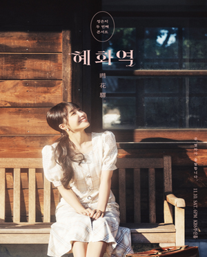 공 연 명 : 정은지 두 번째 콘서트 <혜화역(暳花驛)> - 부산 공연일시 : 2018년 11월 10일(토) 오후 6시 공연장소 : KBS부산홀 티켓가격 : 전석 99,000원 관람등급 : 만 7세 이상 관람가 관람시간 : 120분