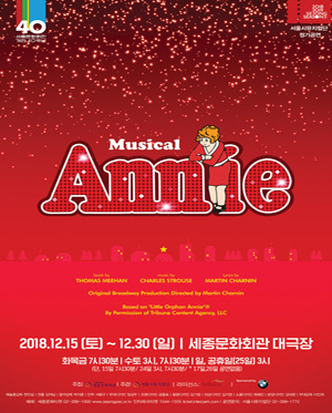 세종문화회관 개관 40주년을 맞아 서울시뮤지컬단(단장 한진섭)이 연말 송년가족뮤지컬로 관객을 맞는다. 미국 대공황 시절을 배경으로 밝고 용감한 애니의 좌충우돌 이야기를 그린 뮤지컬 〈애니〉가 12월 15일(토)부터 30일(일)까지 세종문화회관 대극장 무대에 공연한다. 1976년 미국 초연 이후 브로드웨이에 입성해 제 31회 토니상에서 최우수 뮤지컬 등을 휩쓴 뒤 현재까지 40년이 넘도록 전 세계 관객들에게 사랑받고 있는 흥행작이다. 한국에서는 2006년 12월 세종대극장에서 초연해 이듬해 제13회 한국뮤지컬대상 베스트외국뮤지컬상과 기술상을 수상했으며, 2011년까지 4회에 걸친 재공연 모두 관객점유율 80% 이상을 달성하며 관객과 평단의 뜨거운 사랑을 받았다.