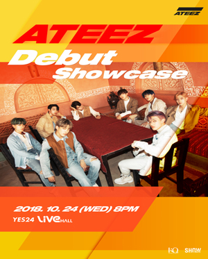 공연 제목: ATEEZ(에이티즈) Debut Showcase 공연 기간: 2018년 10월 24일(수) 공연 시간: 오후 8시 공연 장소: YES24 LIVE HALL(구,악스홀) 티켓 가격: 전석 10,000원 관람 연령: 8세 이상 관람가(미취학 아동 입장불가) 매수 제한: 1인 4매 할인 정보: 할인 없음