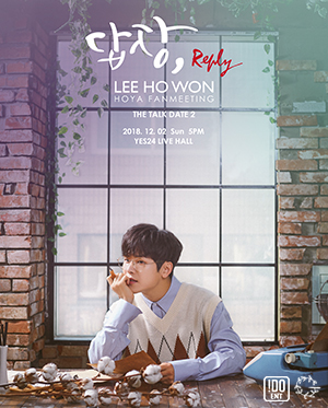 공연 제목 : 이호원 HOYA FIRST FANMEETING [답장,Reply] 공연 기간 : 2018.12.02 공연 시간 : 일요일 오후 5시 공연 장소 : YES24 LIVE HALL 티켓 가격 : 전석 66,000원