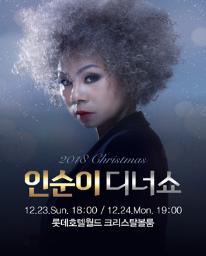 차별화된 음악과 무대, 그리고 롯데 수석 셰프들이 엄선한 재료로 선보이는 특급 코스요리와 함께 하는 품격 있는 서비스로 인생에서 가장 화려하고 행복한 크리스마스를 만들어줄 ‘2018 인순이 크리스마스 디너쇼’로 초대합니다.