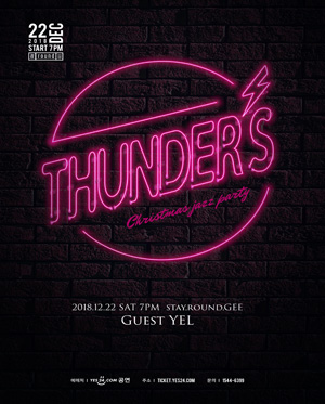 공연 제목 : THUNDER’S 공연 기간 : 2018.12.22 공연 시간 : 토 19시 공연 장소 : 홍대 stay.round.GEE 티켓 가격 : 55,000원