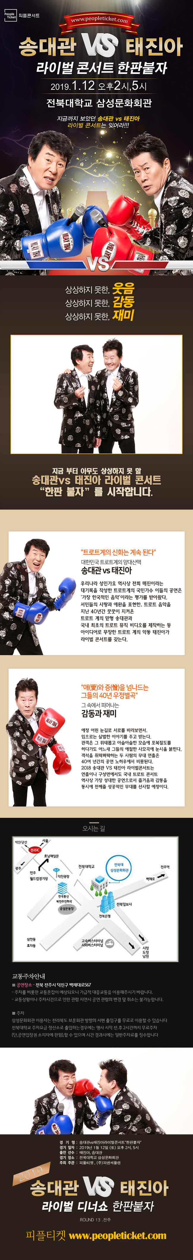 - 공연일시 : 2019. 01. 12(토) 오후 2시, 5시 - 공연장소 : 전북대학교 삼성문화회관 대공연장 - 티켓가격 : VIP석 99,000원 / R석 77,000원 / S석 55,000원 - 관람등급 : 만8세 이상 - 관람시간 : 120분 (인터미션 : 0분)