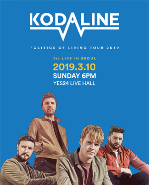 얼터너티브 락의 대표적인 아일랜드 출신 5인조 밴드 코다라인(Kodaline)이 오는 2019년 3월 10일 첫 단독 내한공연을 펼친다. 앞서 더블린에서 2만명 넘는 공연을 매진시킨 이들은 글로벌 투