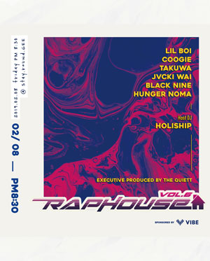 공연명 : RAP HOUSE VOL.6 공연 기간 : 2019년 2월 8일(금) 총 1일 1회 공연 시간 : 오후 8시 30분 공연 장소 : 스테이라운지 (합정) 티켓 가격 : 스탠딩석 : 25,000원 관람 연령 : 만 12세 이상 관람 시간 : 90분