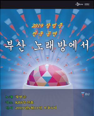 - 공 연 명 : 2019 장범준 전국공연 [노래방에서] - 부산 - 공연일시 : 2019년 5월 11일(토) 오후 6시 - 공연장소 : KBS부산홀 - 티켓가격 : 전석 99,000원 - 관람등급 : 만 7세 이상 관람가