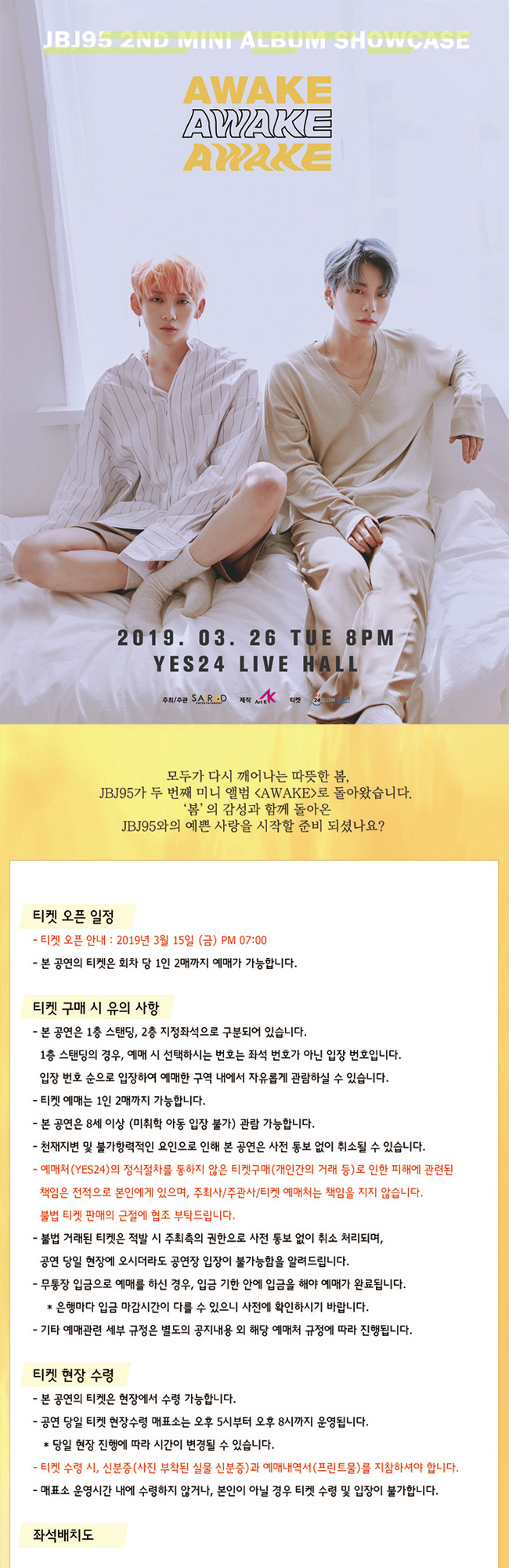 - 예매 오픈 : 2019년 3월 15일 PM 7:00