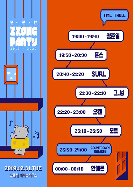 정준일, 오왠, SURL 등 최정상 아티스트와 함께 하는 카운트다운과 새해맞이 [단란한 쫑파티 2019-2020] 12월 31일 노들섬으로 단란하게 모여 보자!