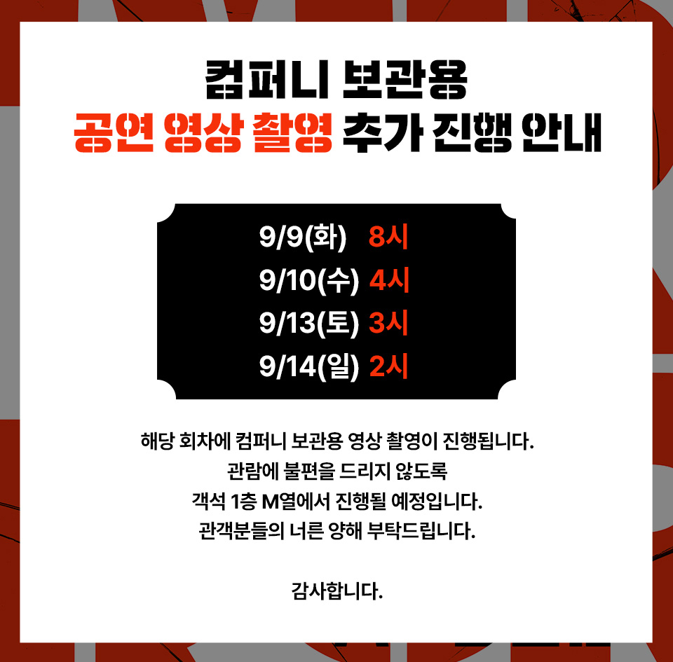※ 하기 회차는 별도 오픈 예정입니다. 예매 시 참고 부탁드립니다.