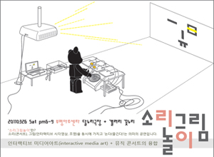 '소리그림놀이'는 소리(콘서트), 그림(인터렉티브 시각영상, 조명)을 동시에 가지고 논다는 의미입니다. 콘서트와 인터렉티브(Interactive:상호작용, 양방향성)미디어 아트를 접목하여, 관객들은 공연이 진행 되는 동안 출연자의 소리에 반응하는 영상을 즐길 수가 있습니다