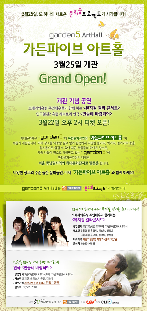 가든파이브 아트홀 개관 기념 공연 티켓 오픈 안내