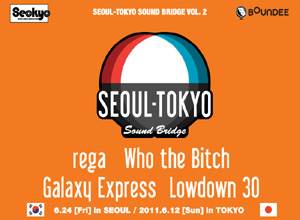그동안 간헐적으로 있어왔던 각국의 인디레이블 간의 교류를 시스테믹(systemic)한 장기적 프로젝트로 끌어냄으로써 하나의 이벤트로 끝나는 것이 아니라 상호 시장 확대로 이어지는데 모태역할을 할 이번 서울도쿄사운드브릿지 2nd는 한국의 싸이키델릭 블루스록밴드 “로다운 30”과 개러지 록 밴드 “갤럭시 익스프레스”와 일본의 펑크 밴드 “후더비치(Who the Bitch)”, 그리고 4인조 프로그레시브 잼 밴드인 ‘레가(Rega)’가 함께 한다.