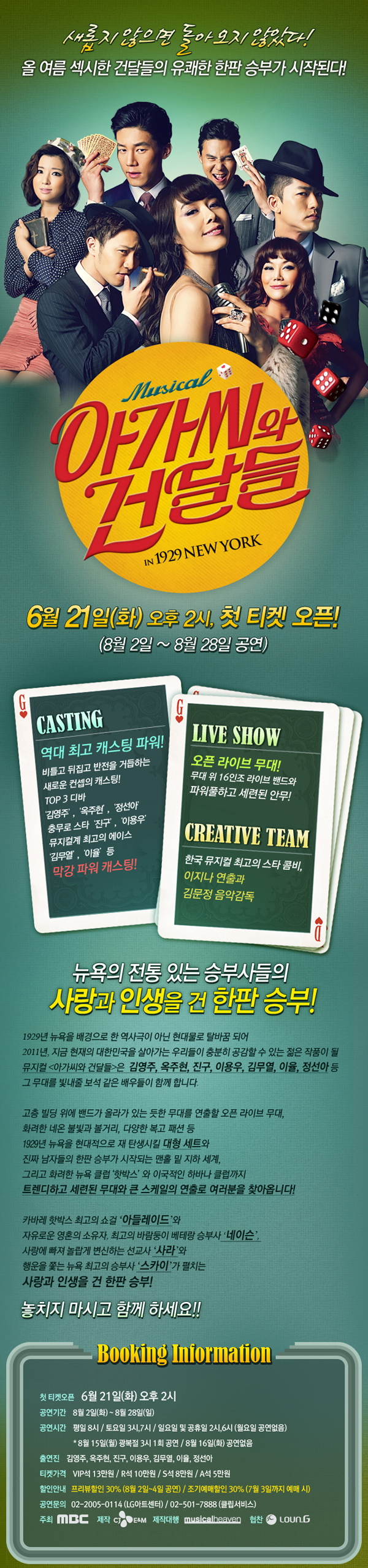 공연시간 : 평일 8시 / 토요일 3시,7시 / 일요일 및 공휴일 2시,6시 (월요일 공연없음)