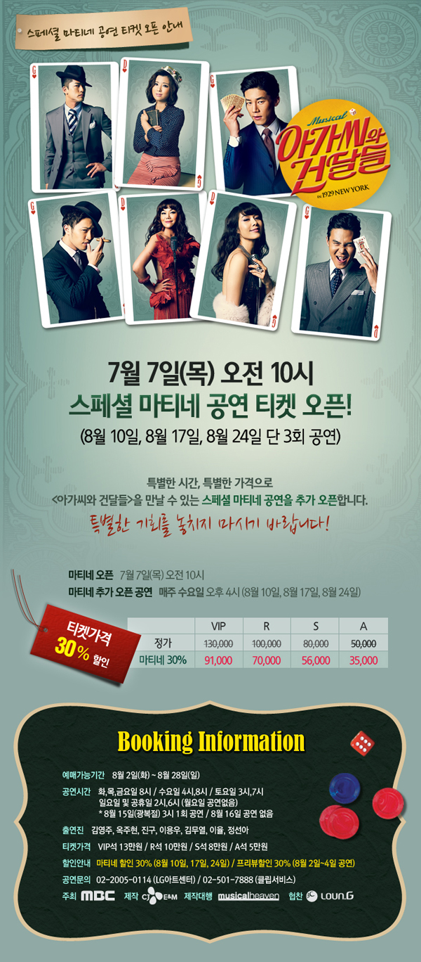 할인안내 : 마티네할인 30% (8월 10일,17일, 24일)/프리뷰할인 30% (8월 2일~4일 공연)