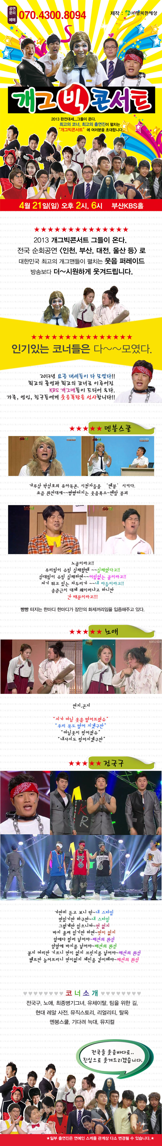 공연 기간 : 2013년 04월 21일(일) 공연 시간 : 2시, 6시 공연 장소 : 부산 KBS홀 티켓 가격 : VIP석 : 77,000원, R석 : 66,000원, S석 : 55,000원, A석 : 44,000원