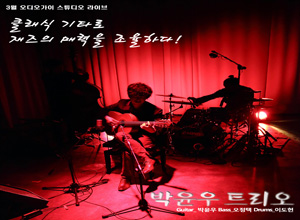 2012년 담백하면서도 깊이 있는 어쿠스틱 기타 연주가 담긴 한 장의 앨범이 재즈팬들 사이에 화제가 되었다. 앨범의 주인공은 박윤우! 대학에서 클래식 기타를 전공한 후 유학을 떠나 네덜란드에서 재즈를 전공한 독특한 경력의 소지자. 하지만 이미 재즈계에서 그는 인정받는 기타리스트 중의 한 명이다. 그가 베이시스트 오정택, 드러머 이도헌과 함께 <The Songs Of My Guitar>를 발표 클래식, 영화음악, 가요, 재즈 스탠다드 등 다양한 음악을 자신의 트리오를 통해 기타 위주의 서정적인 음악으로 재해석하였다. 특히 어쿠스틱 기타에 있어 기존 재즈 기타리스트들에게서 발견하기 힘든 안정되고 세밀한 터치는 독보적이라는 평가를 받았다. 또한 그의 즉흥연주는 마치 클래식의 변주곡을 듣는 듯 너무도 유연한 멜로디를 지니고 있다. 이런 박윤우의 매력을 그리고 박윤우 트리오의 멋진 앙상블을 40명만이 관람이 가능한 레코딩 스튜디오에서 오는 3월 2일에 만날 수 있다