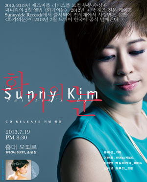 하지만 열악한 국내의 음반 시장 상황으로 써니사이드 레이블이 한동안 국내에 소개되지 못하면서 써니 킴의 <Painter’s Eye>를 국내에서 찾아보기 힘들었다. 하지만 얼마 전 미러볼 뮤직이 써니사이드와의 유통계약을 성사시키면서 올 7월 마침내 <Painter’s Eye>를 국내에서 만나게 되었다. 그리고 이를 기념하기 위한 앨범 발매 공연을 7월 19일 홍대 오뙤르에서 갖는다. 사실 오뙤르는 2011년 써니 킴이 이 프로젝트를 준비하며 처음으로 공연을 가졌던 장소이기도 해 더욱 의미를 갖는다. 최근 써니 킴이 여성 작곡가들의 음악을 노래하는 프로젝트 ‘The Songs Of The Women’에서 계속 호흡을 맞춰오고 있는 유태성(기타), 이하윤(피아노), 라이언 맥길리커디(베이스), 스티브 프루잇(드럼)이 출연하며 <Painter’s Eyes>의 수록곡들과 여성작곡가들의 노래를 들려줄 예정이며 게스트로 써니 킴의 음악 친구이자 최근 2집 앨범 <입술>을 발표한 싱어송라이터 송용창이 출연한다.
